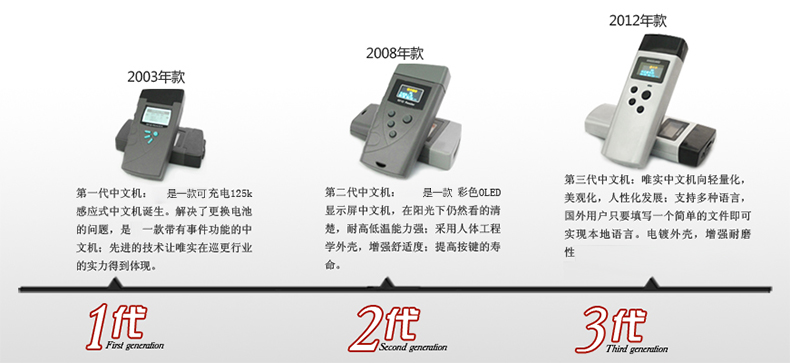 唯實互聯(lián)巡更中文機3代,鋅鋁合金電鍍外殼,雙色OLED顯示屏, 陽光下仍然清晰可見,巡邏導(dǎo)航:自動提示下一巡檢地點名稱, 本機查看巡邏記錄、事件、巡邏人員、鬧鈴等。